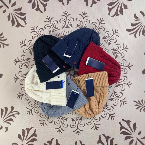 RL Herbst Winter Warme kälte feste POLO gestrickte Pony mütze All-Match Paar Pullover grenz überschreitende Stickerei Stilvolles Bild design